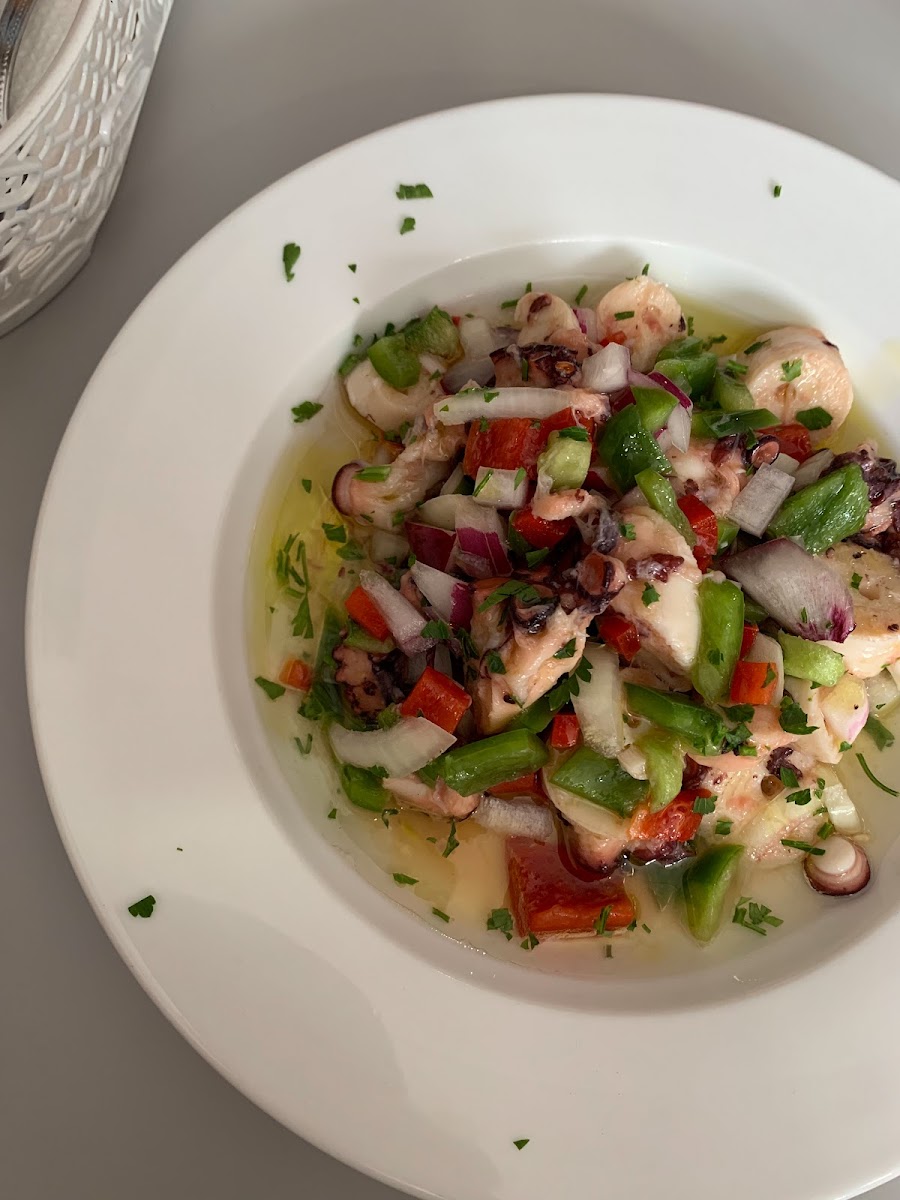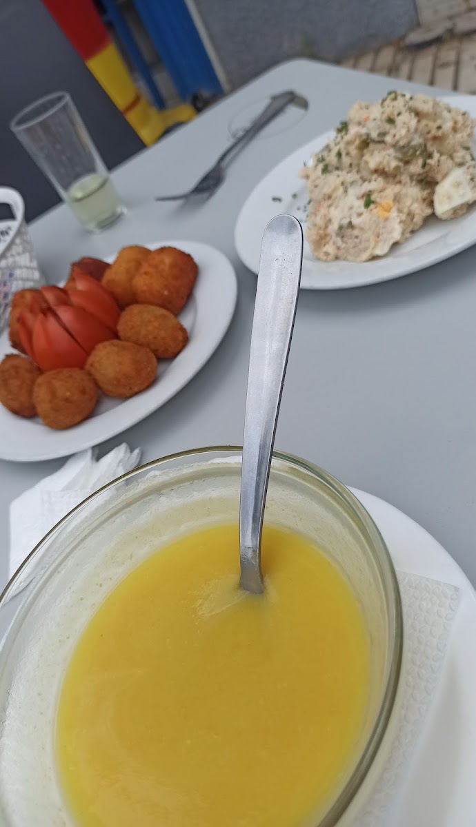 This is a classic local bar with wooden paneling and metal stools. People don’t come here for the design, but for the tasty food and the relaxed atmosphere. We went for the set menu: soup, papas con carne, and tea. We also ordered an octopus salad. Everything turned out to be surprisingly delicious — homemade, hearty, and unpretentious. The salad was especially good: fresh vegetables and tender octopus in a light marinade.